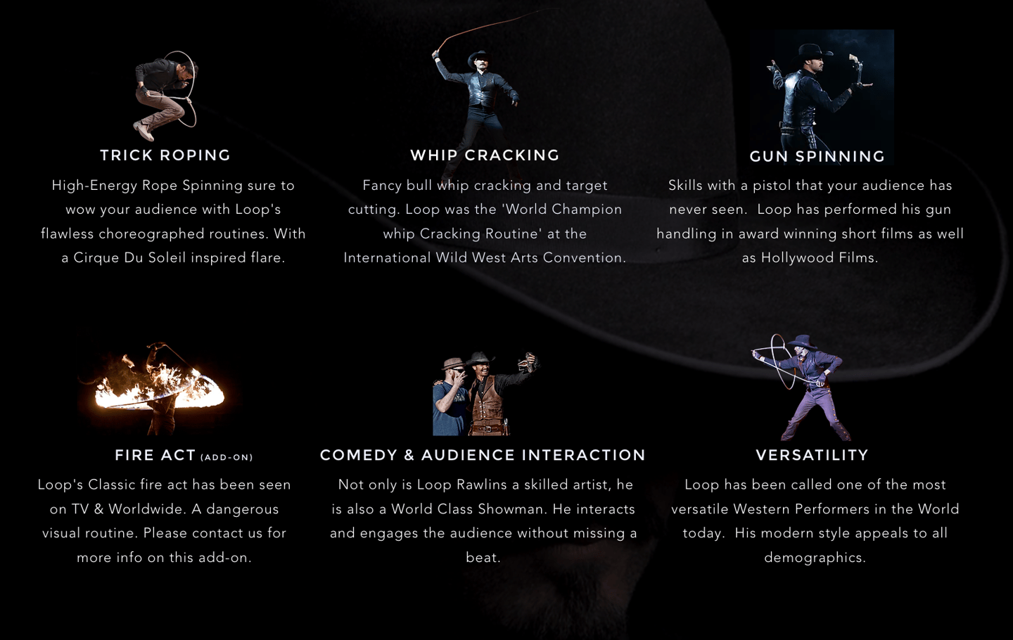 He also appeared on the summer hit television show, 'America's Got Talent' season 9, making it to the Quarterfinals. Loop continues to keep the spirit of the West alive through his performances around the world.